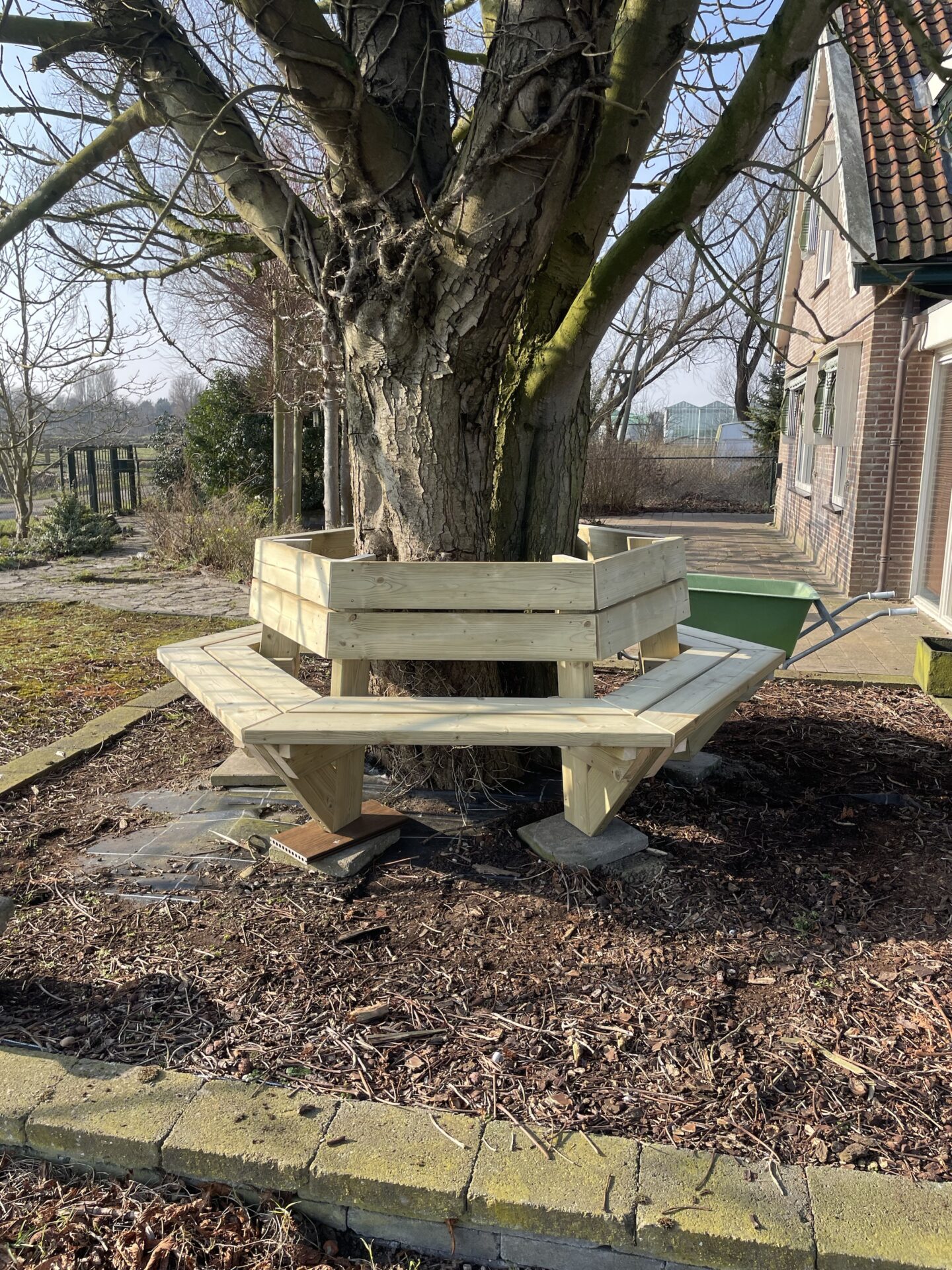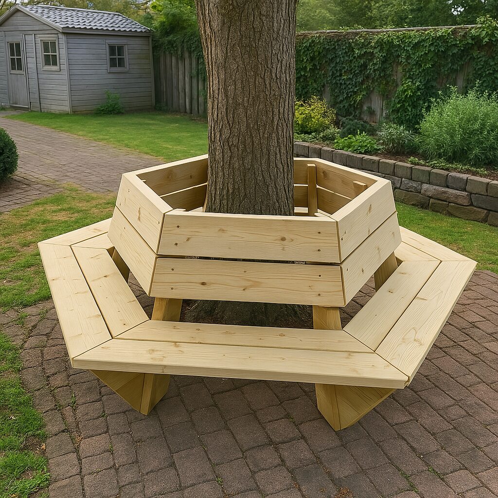 Deze stijlvolle boombank is vervaardigd uit duurzaam geïmpregneerd vurenhout, wat zorgt voor een lange levensduur en weerbestendigheid. Dankzij het ronde ontwerp past hij perfect rondom bomen, waardoor je optimaal van je tuin kunt genieten. De natuurlijke uitstraling van het vurenhout geeft elke buitenruimte een warme en uitnodigende sfeer. Ideaal voor zowel decoratieve als functionele zitplekken in de tuin of op het terras. Zithoogte: 44cm Buitendiameter: 220cm  Vragen of liever een afwijkende maat? Neem gerust contact me ons op voor de mogelijkheden. Levertijd: 2-3 weken Gratis bezorging! Gemaakt van duurzaam FSC gecertificeerd Hout Wordt kant en klaar geleverd dus geen montage nodig
