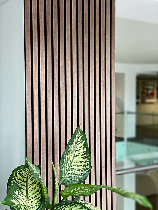 Deze panelen zijn perfect voor in uw woonruimtes! Door de strakke uitstraling zijn deze panelen een goede toevoeging aan uw interieur. Het 9,5 mm dikke vilt achter de latten absorbeert uw geluid voor een goede geluidsdemping. Eenvoudig te monteren met high tack kit.
